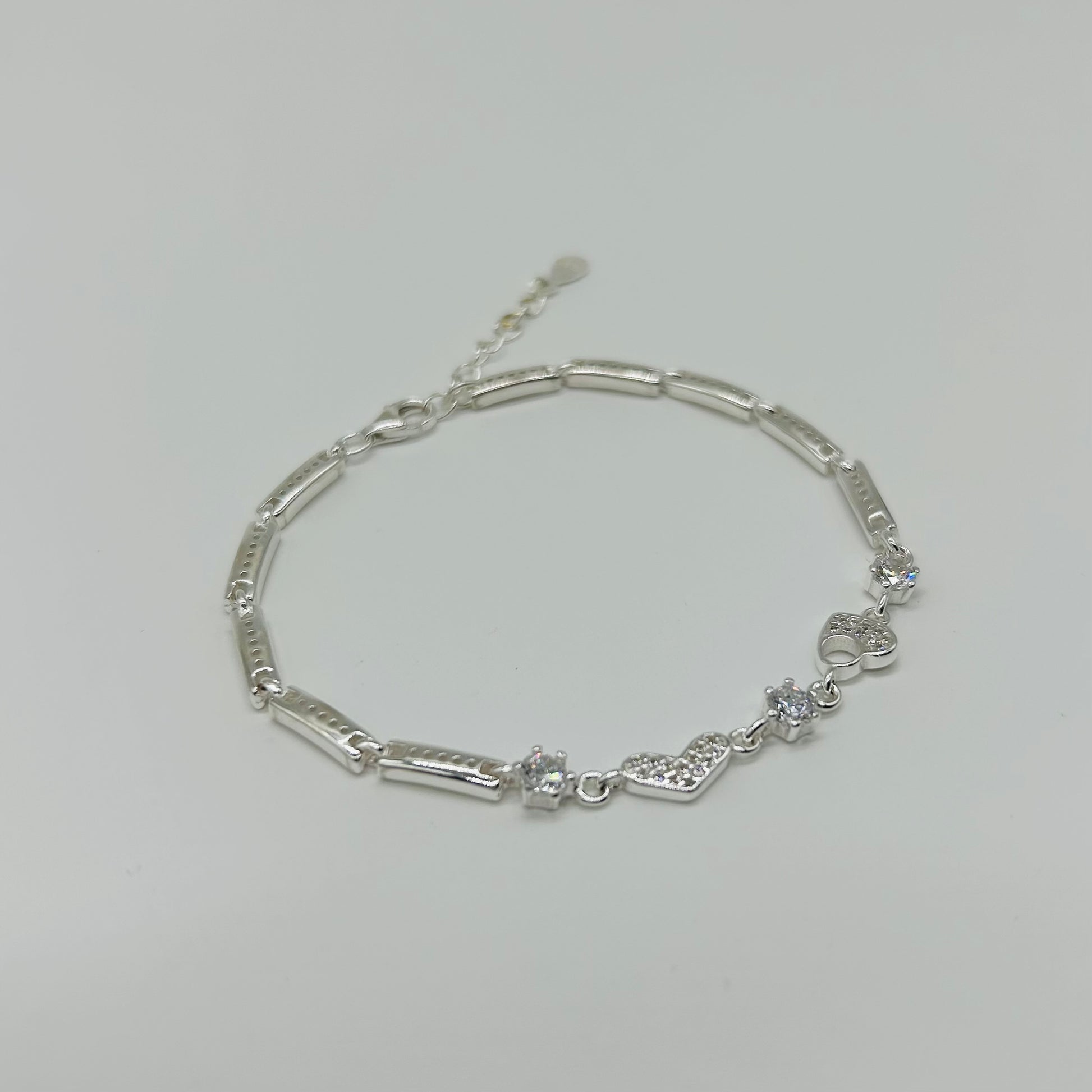 Con un diseño encantador de corazones, plaquitas brillosas y zirconias, esta pulsera es la elección perfecta para añadir un toque de amor y glamour a cualquier atuendo. ¡Haz que tu muñeca sea el centro de atención con esta pulsera única!