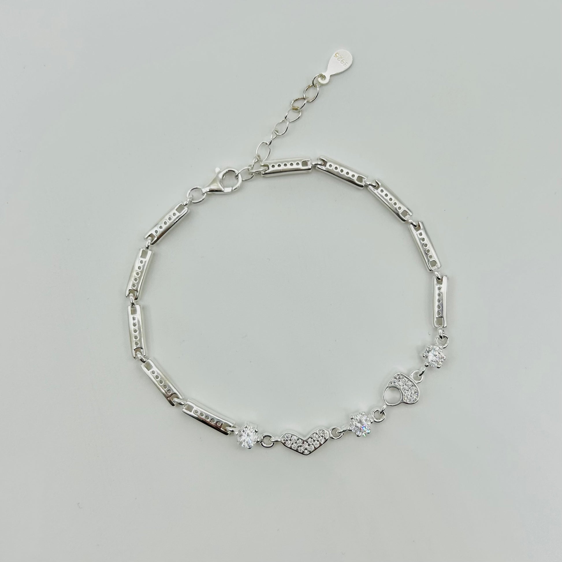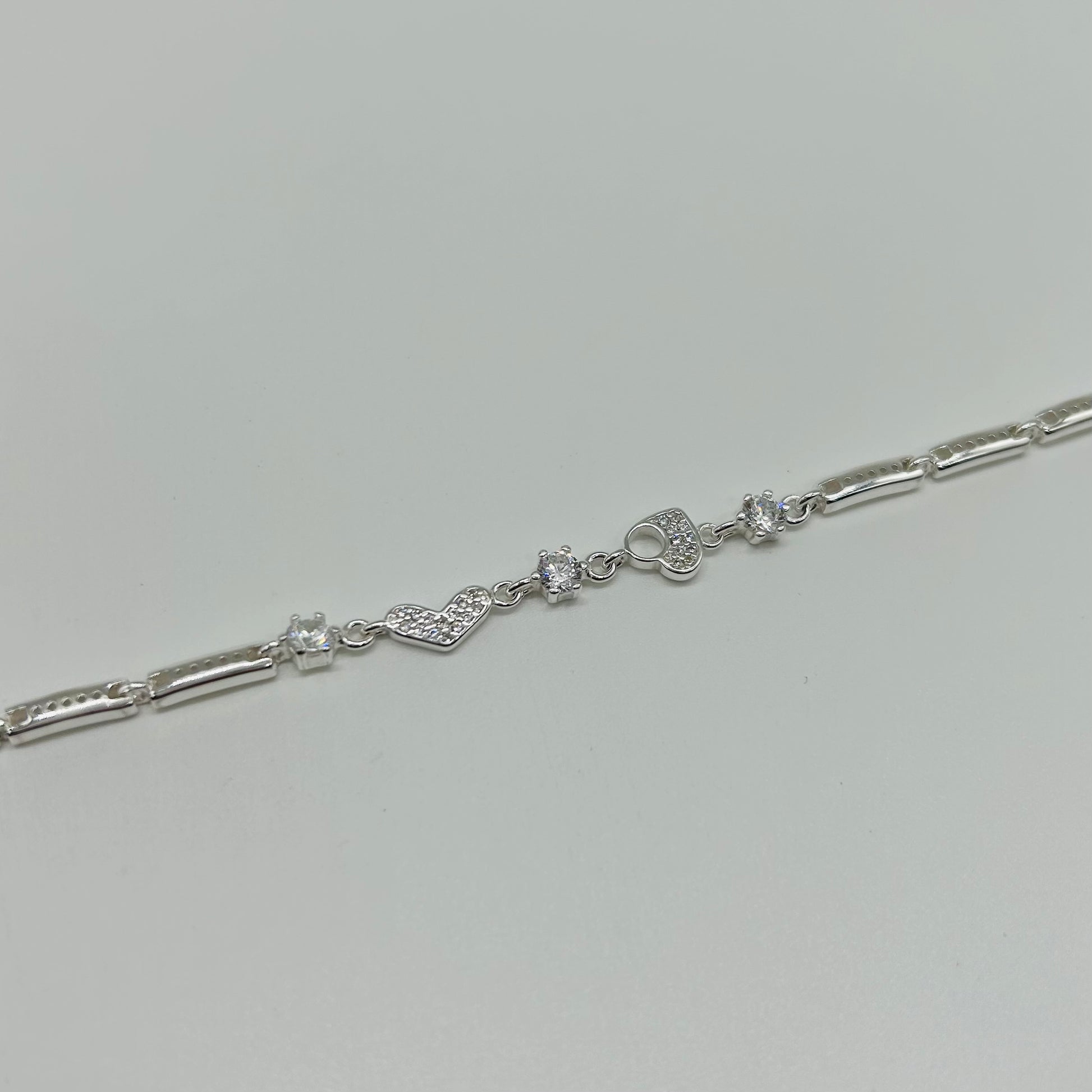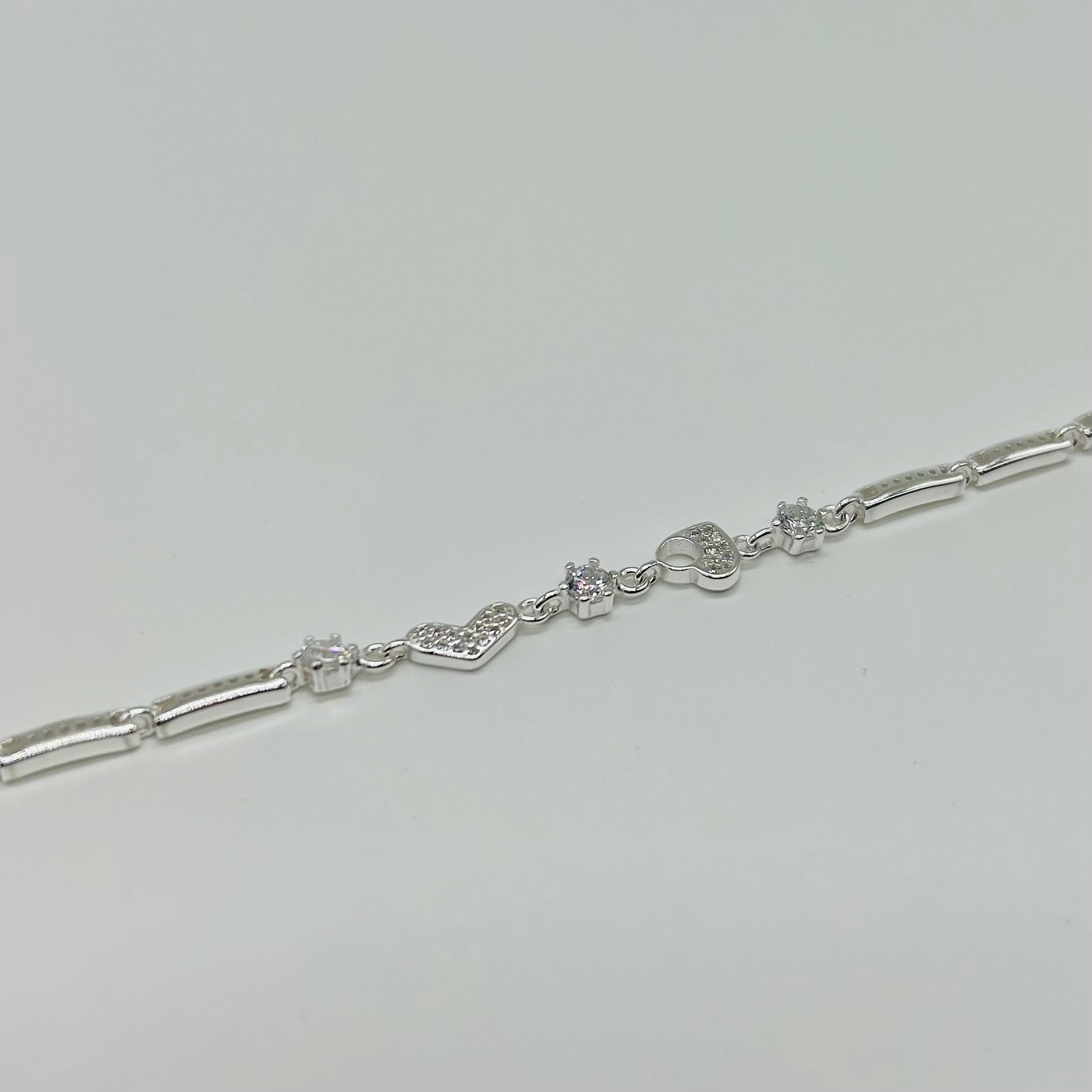 Pulsera Corazones con Plaquitas y Zirconias en Plata