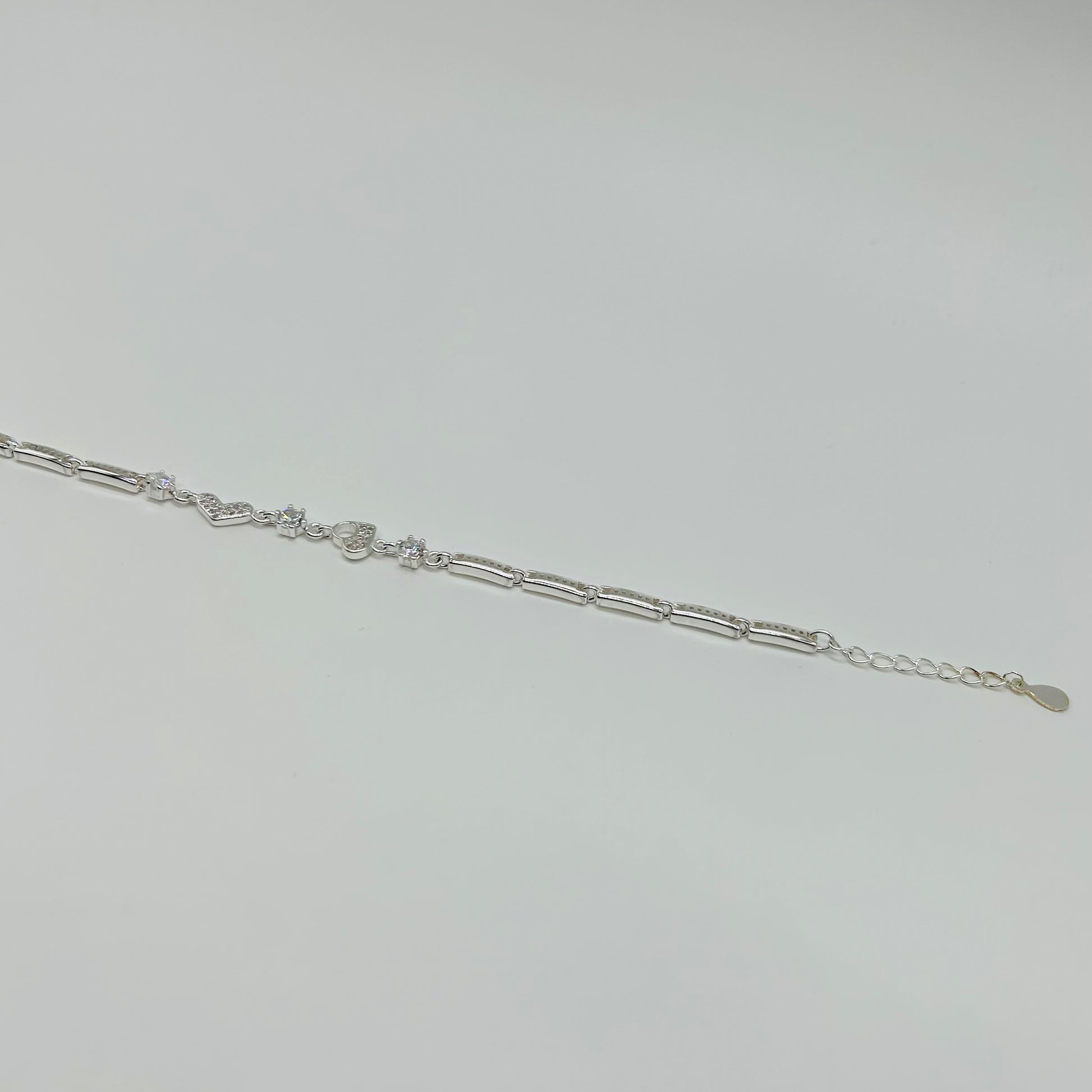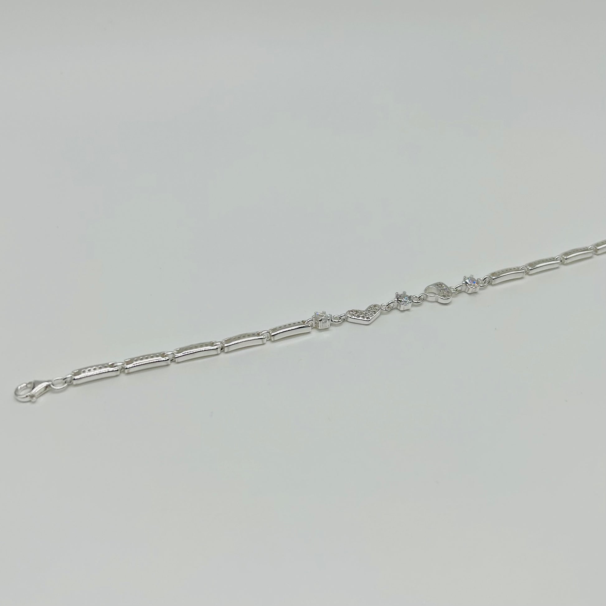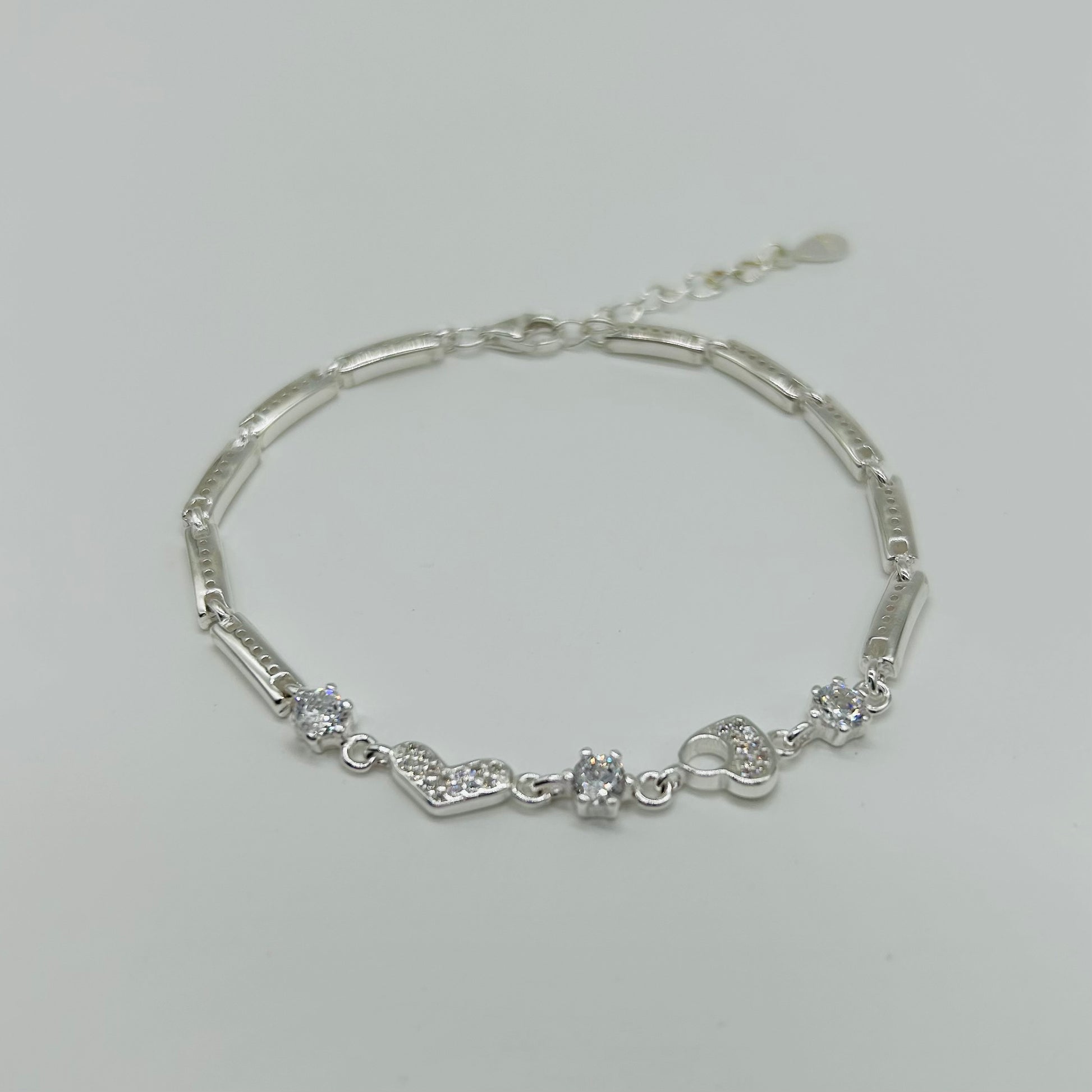 Pulsera Corazones con Plaquitas y Zirconias en Plata