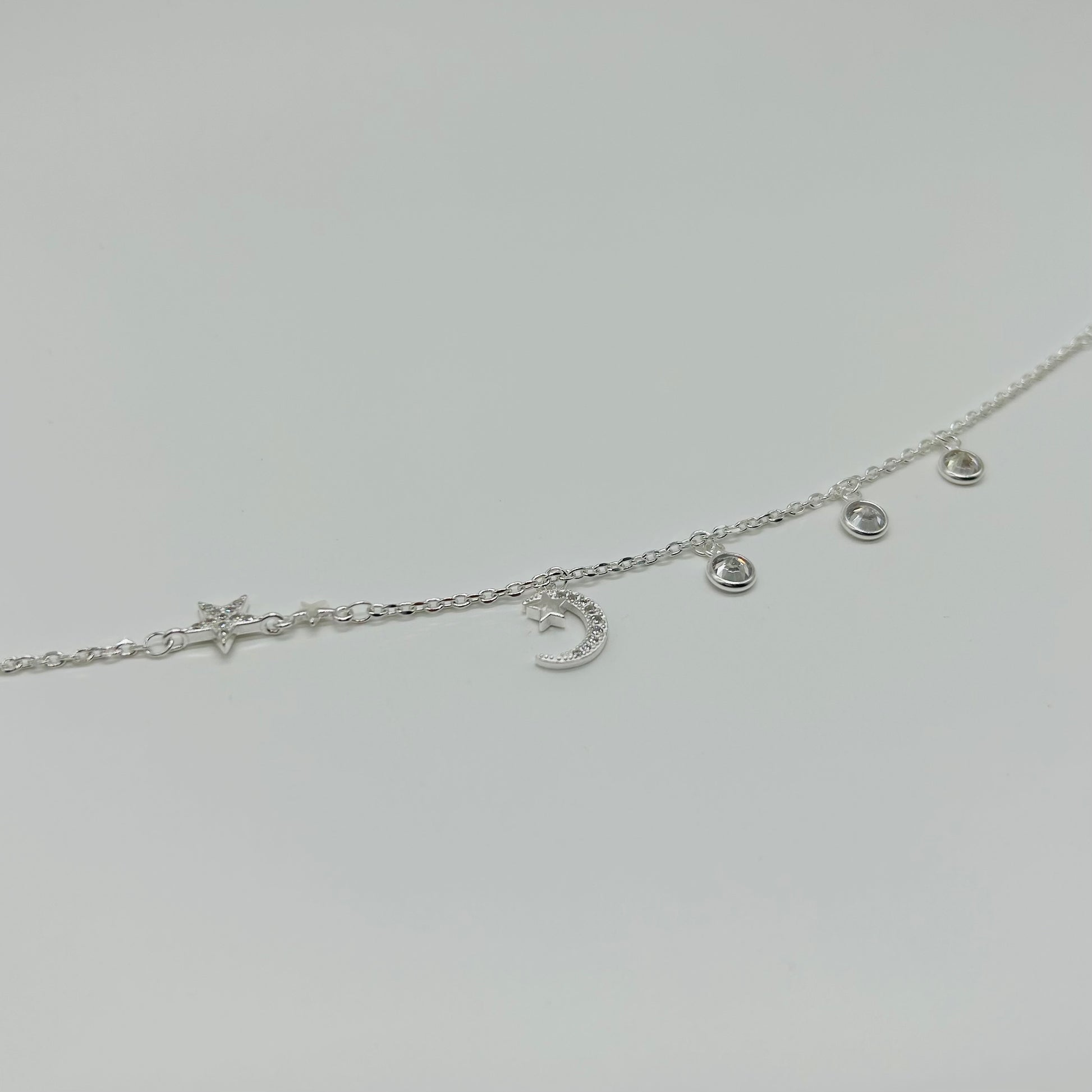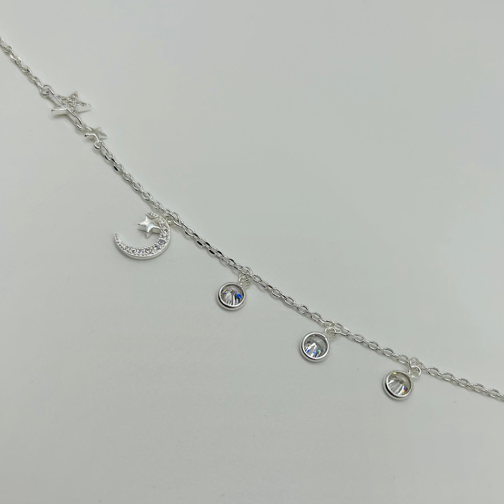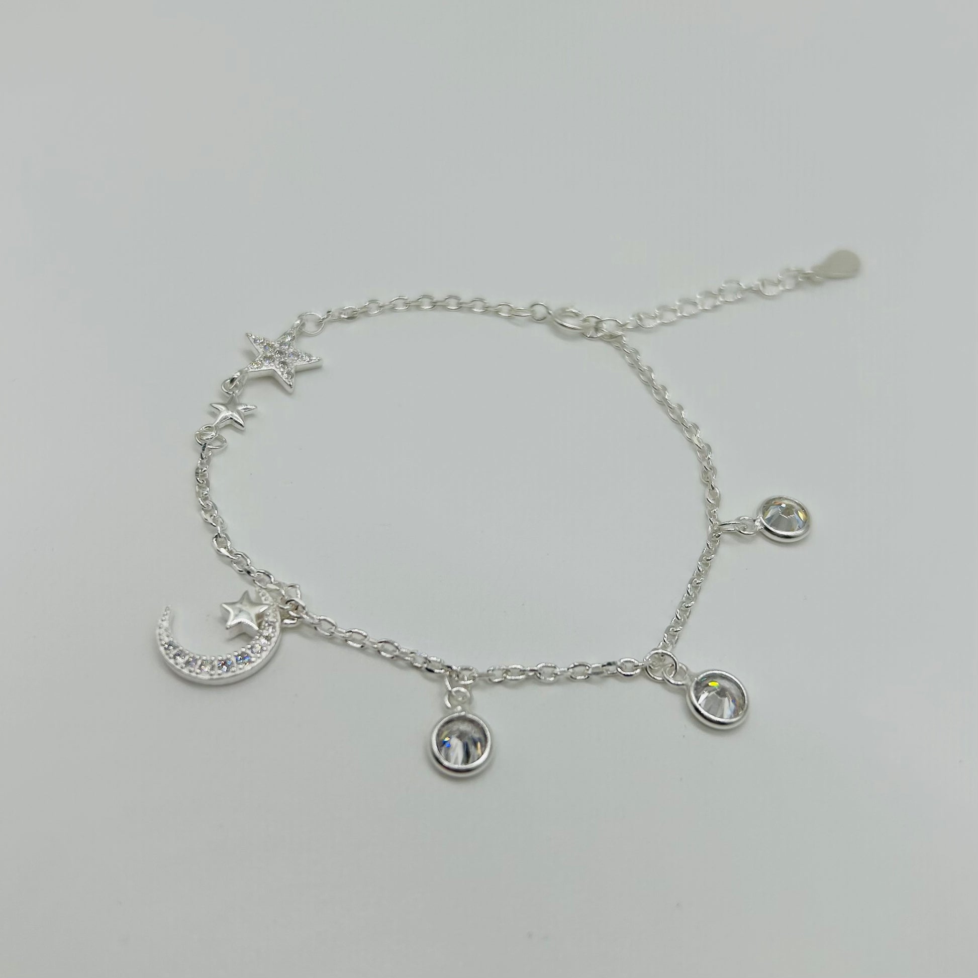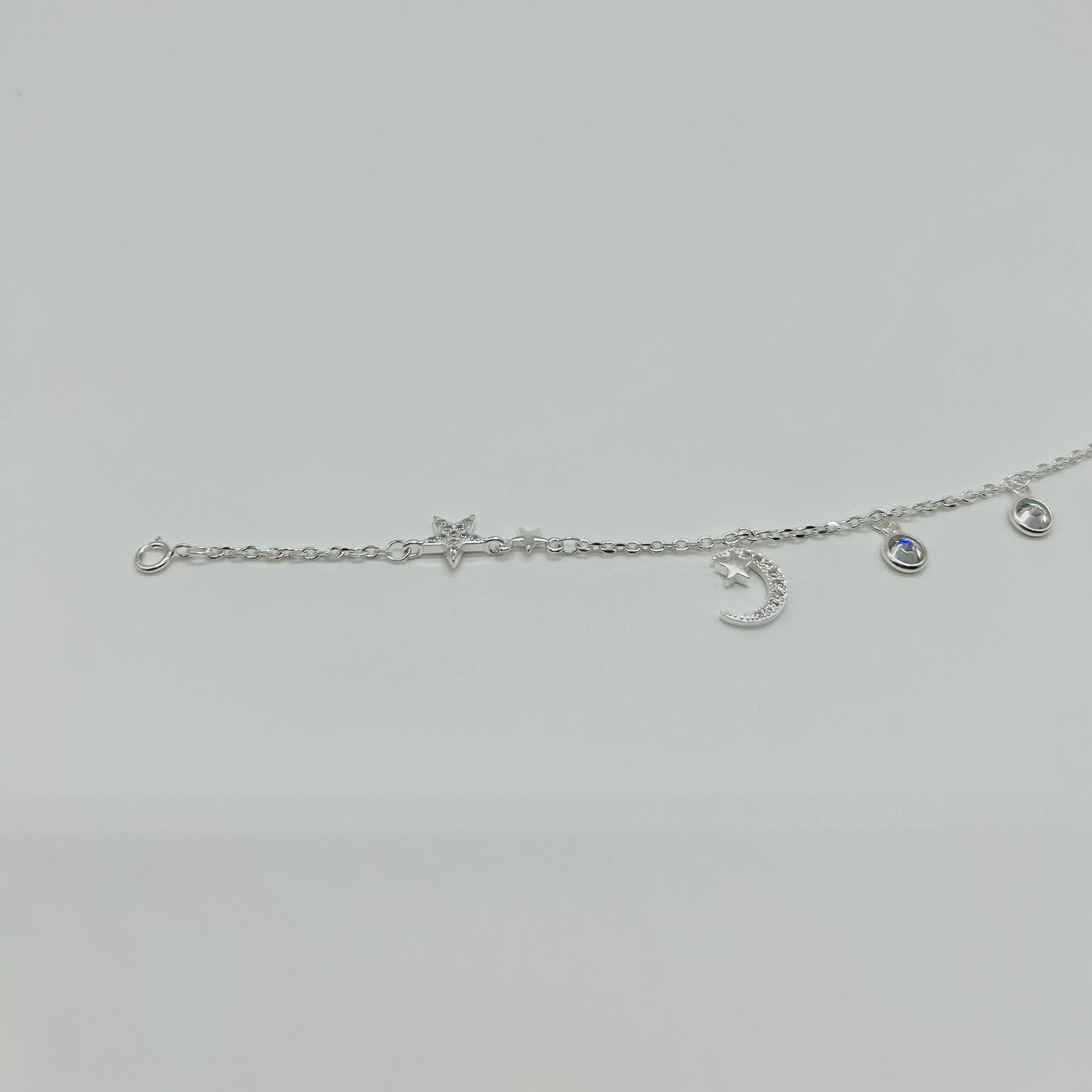Pulsera Lunita y Estrellas con Zirconias en Plata