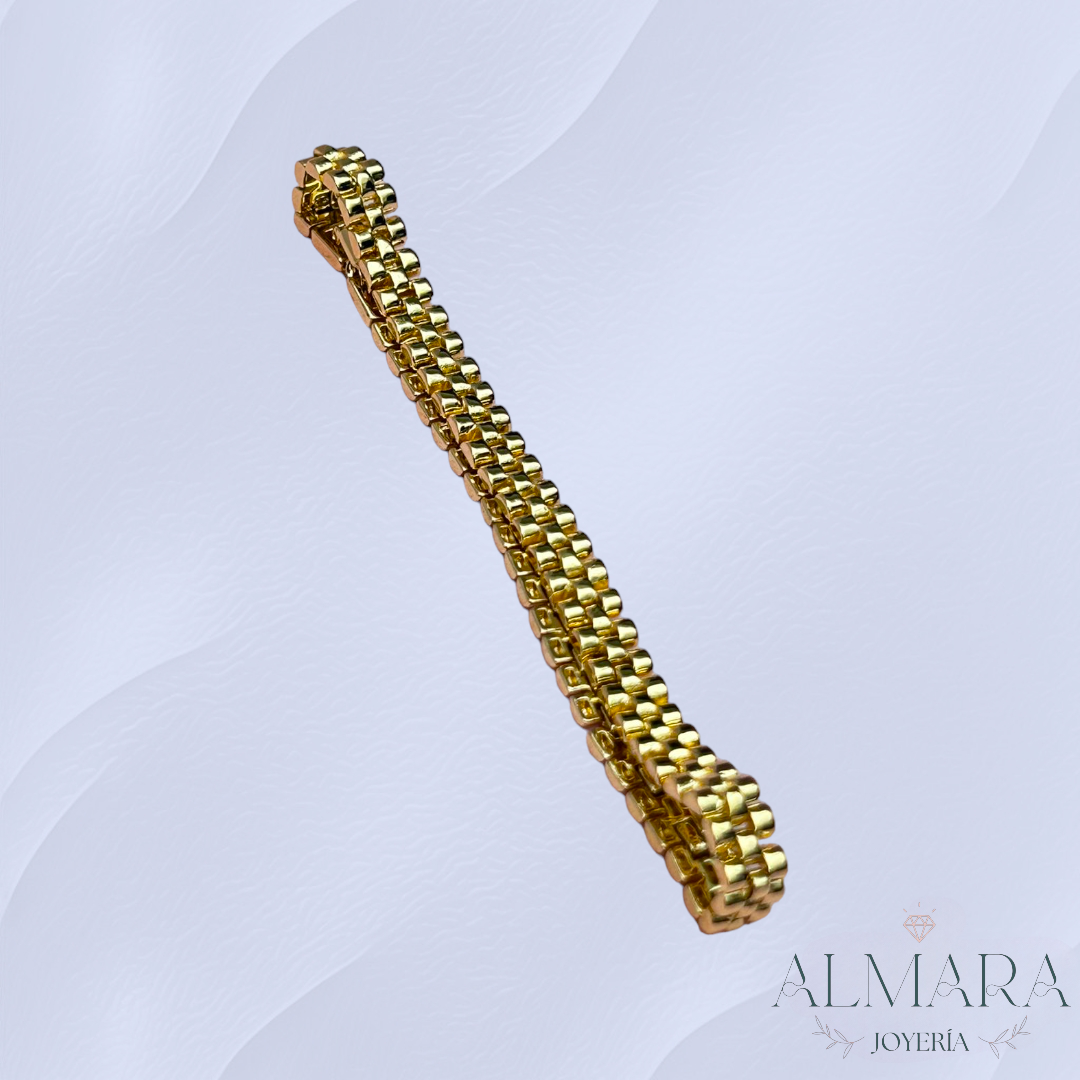 ¡Agregue un toque de elegancia a su estilo con nuestra pulsera tipo Rolex de oro laminado! Hecha con materiales duraderos y de alta calidad, esta pulsera es perfecta para cualquier ocasión. Atraiga todas las miradas con su brillo y sofisticación. ¡Consigue la tuya hoy y complementa tu apariencia con un toque de lujo!