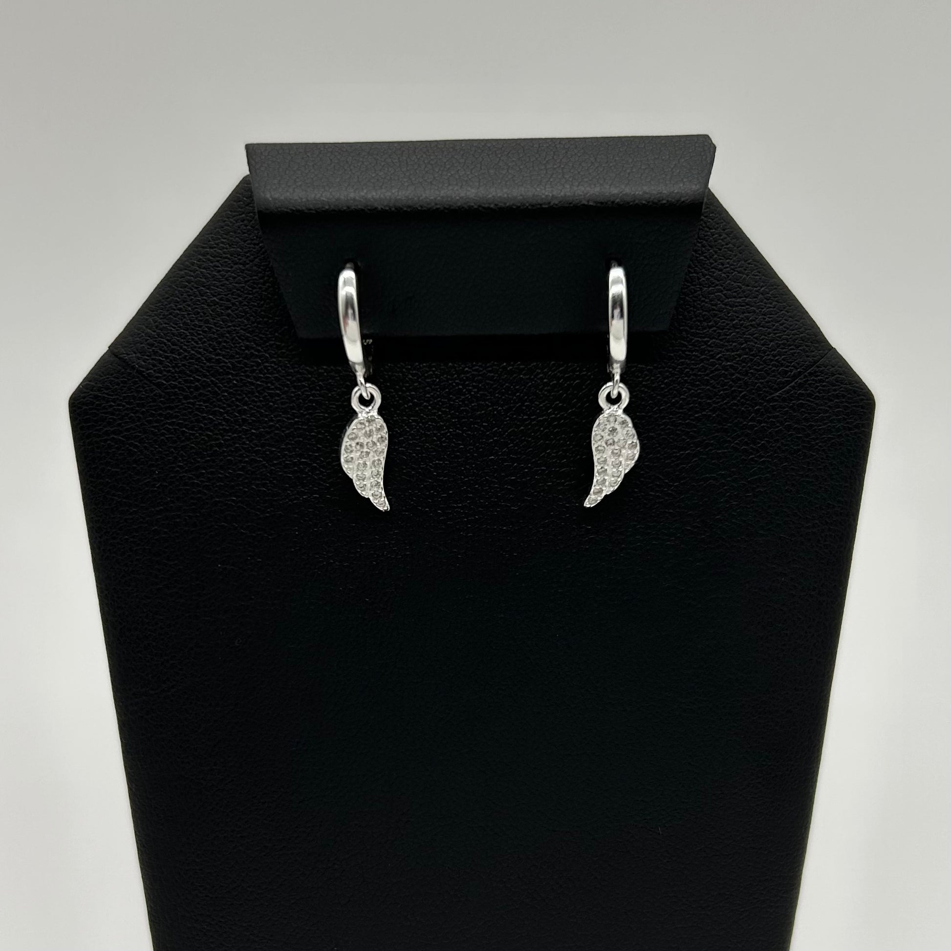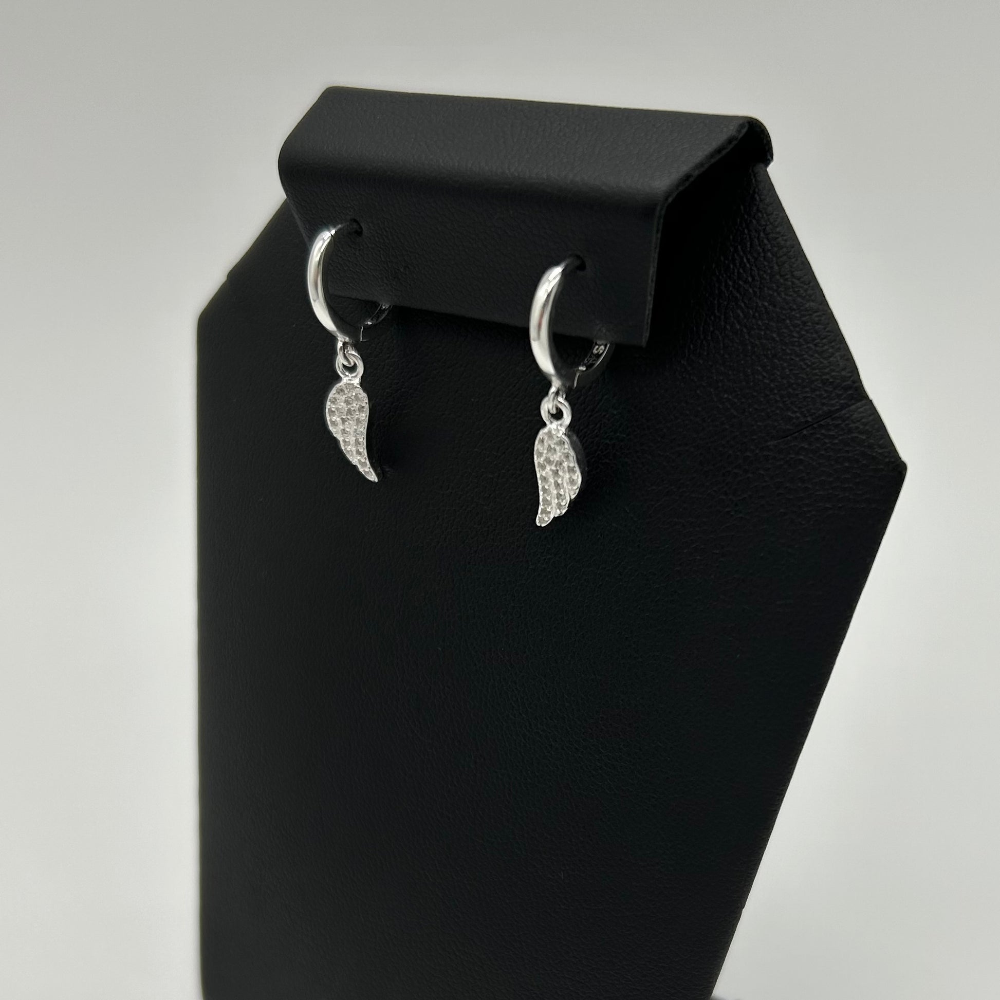 Huggies de Alas con Zirconias y Aros Lisos en Plata